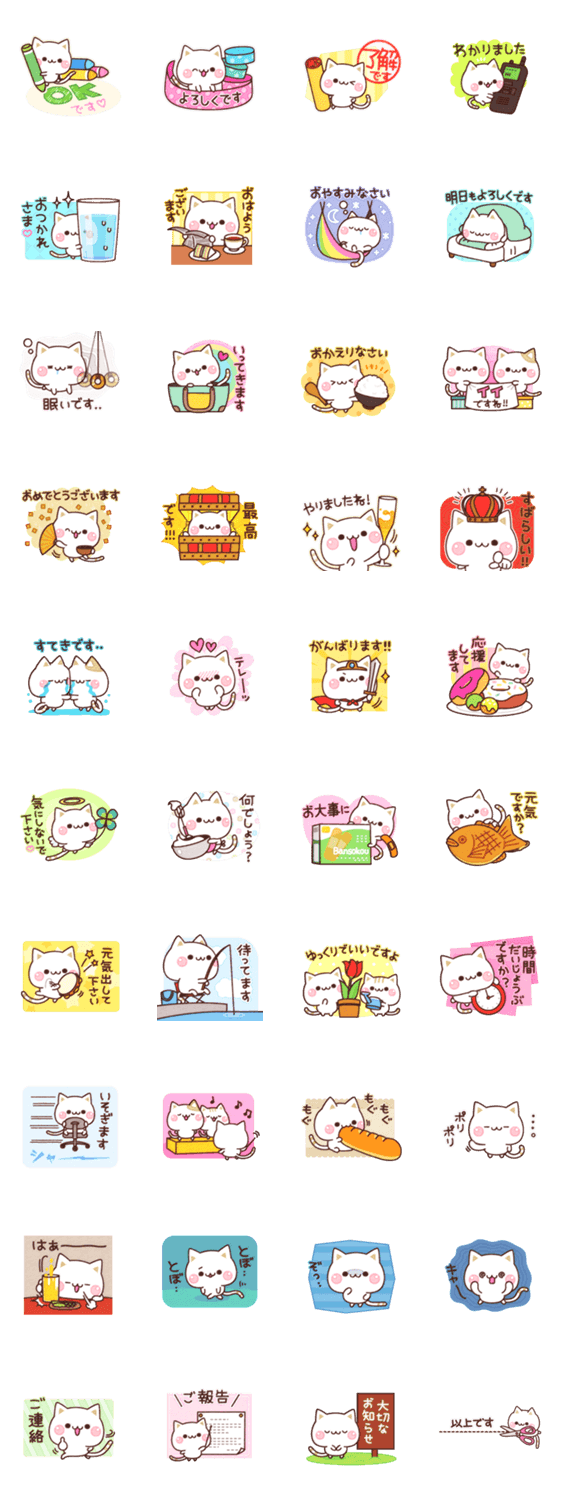 白ネコのあいうえお・・・ってるスタンプ