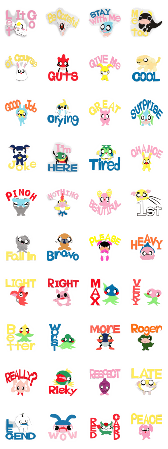 私はこの子達のことを、マスキャラと呼んでいます。マスキャラはアニマランドに棲んでいます。このスタンプには、簡単な英・日語表現が入っています。色画用紙で作製です。