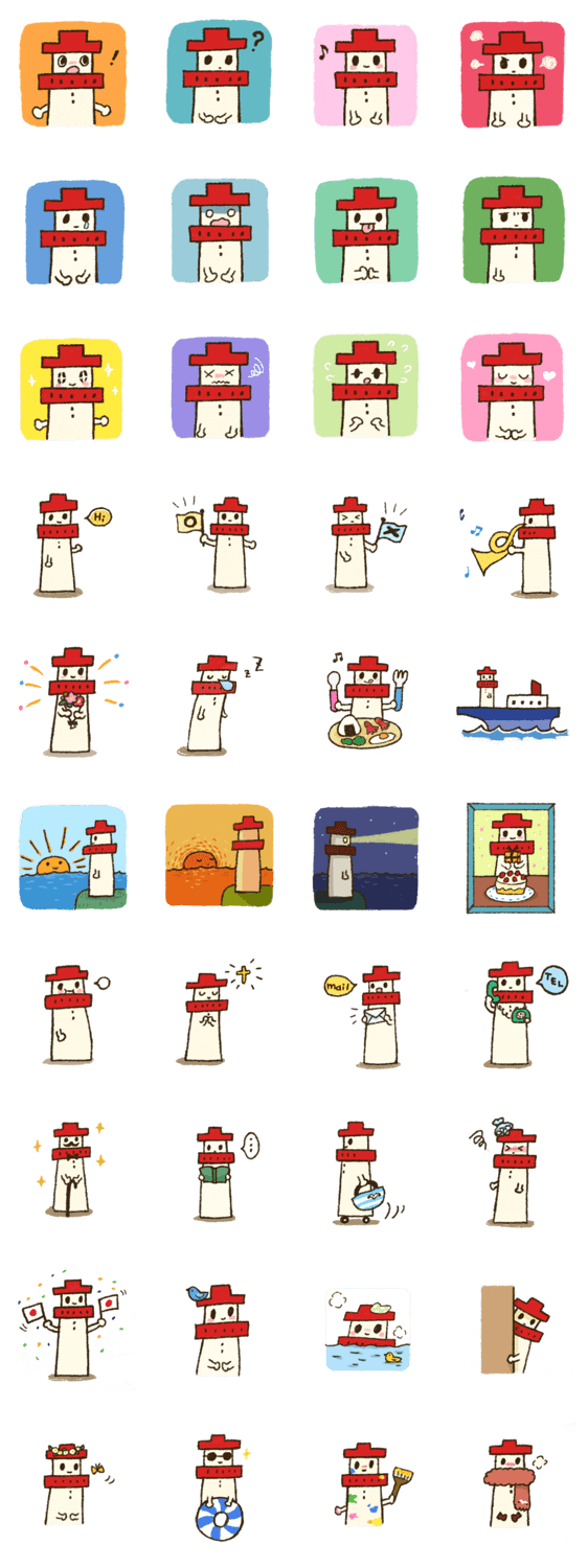 絵本「灯台さん」のスタンプがついに登場!灯台さんが色んな表情を見せてくれました。少しシュールで可愛いスタンプになりましたよ!