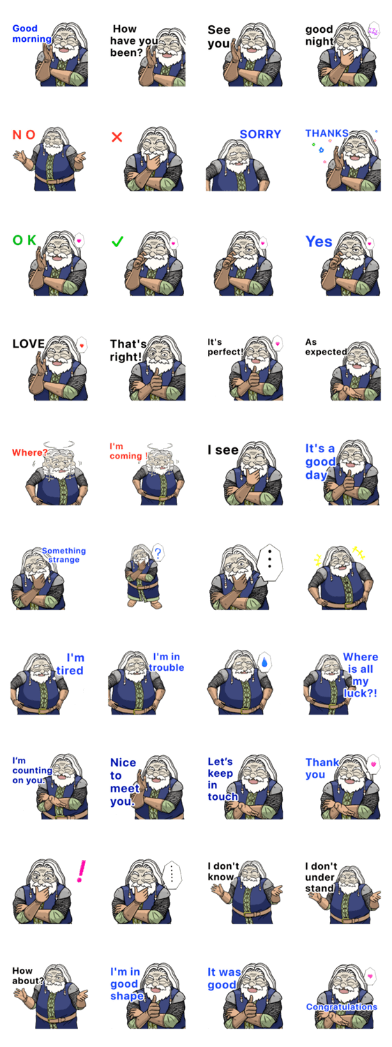 不器用で無口なおじさんが使える、ドワーフの日常スタンプです。