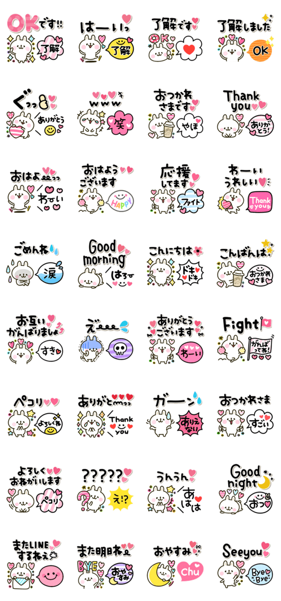 毎日使えるカラフルうさぎの可愛い♡みんなが使える無難な日常言葉セットです。 かわいい/家族/カップル/大人可愛い/ポップ/ガーリー