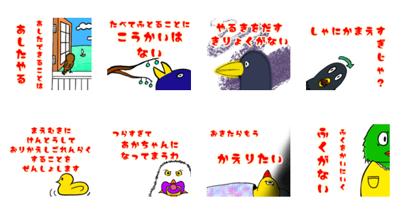 8割くらいの確率で1日1回使える一言をつめあわせたスタンプです!