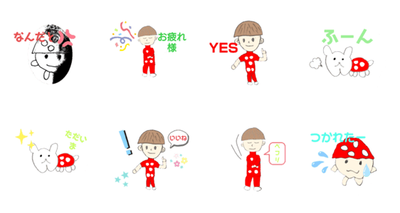 水彩絵の具 風きのこスタンプ第2 -LINEスタンプマニア