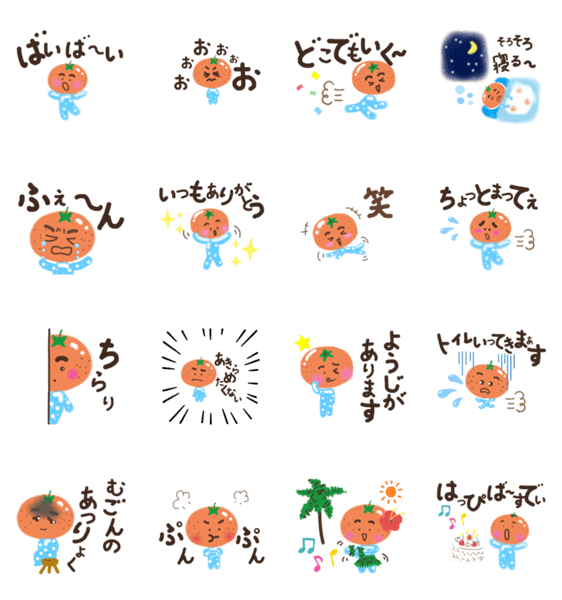 みかん君のスタンプです。体はソーダを主成分としてます。