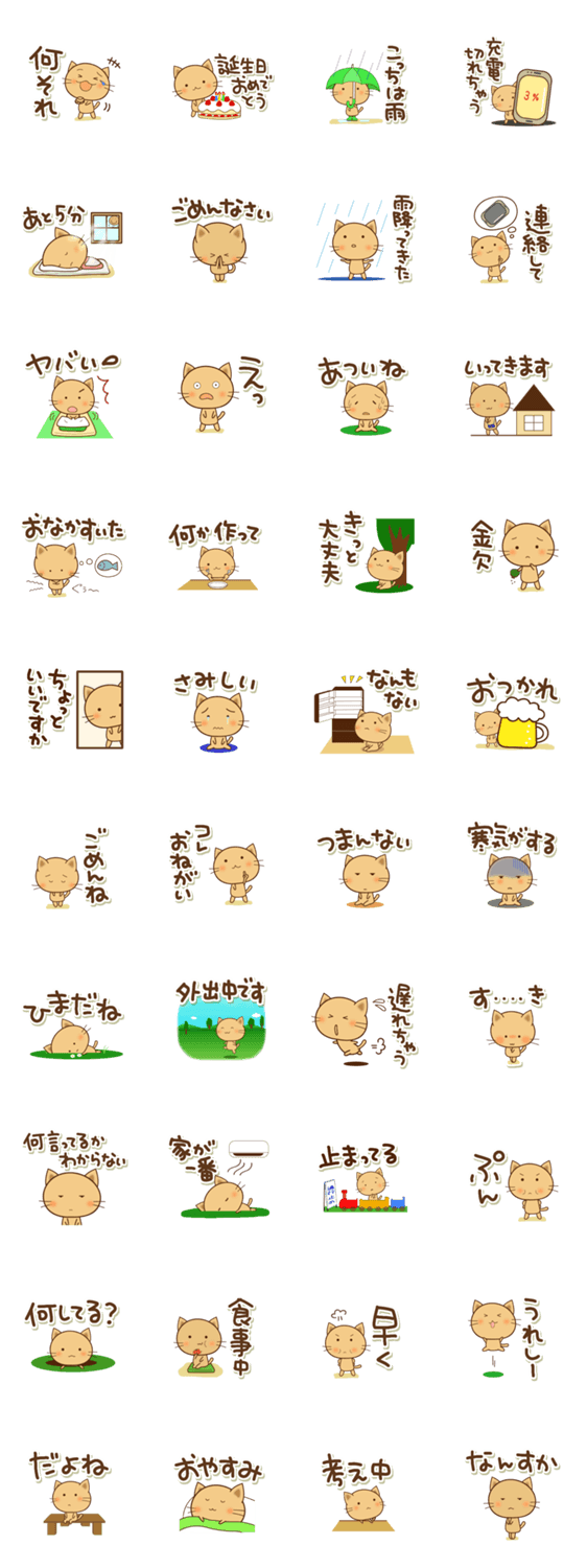 茶色いネコの日常会話。毎日使う挨拶やリアクションがいっぱい。