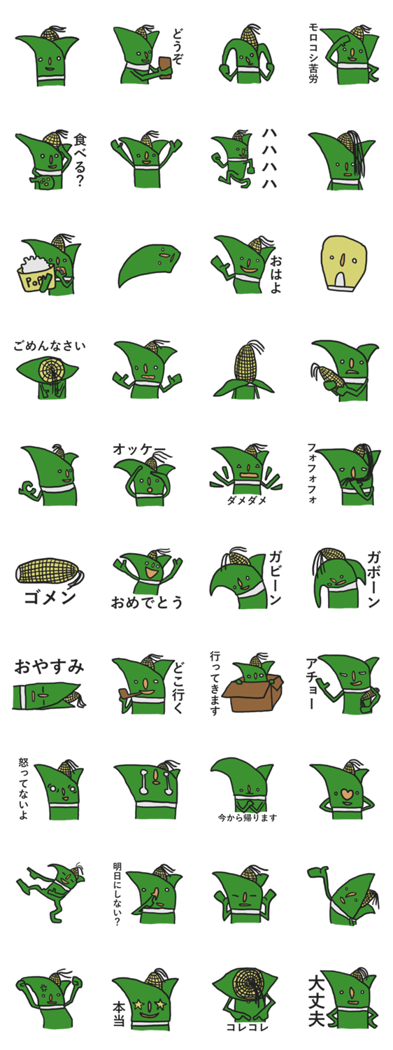 ミスターモロコシのスタンプが登場!!とっても愉快なミスターモロコシ。使いやすいスタンプをそろえてます!