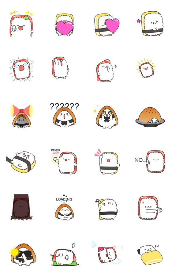 | スタンプ説明 | マグロ、卵、いなり寿司の面白い日常の絵文字 |