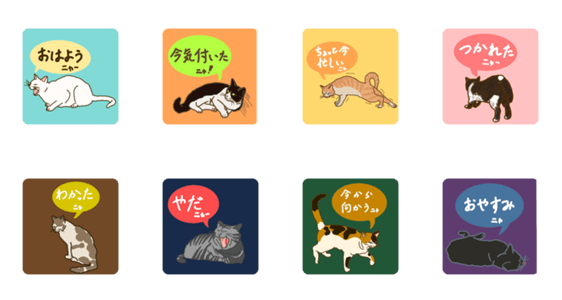 日頃スタンプ使わない人間が、撮りためたネコの写真をイラストに起こした、非常に使い勝手の良いスタンプです。