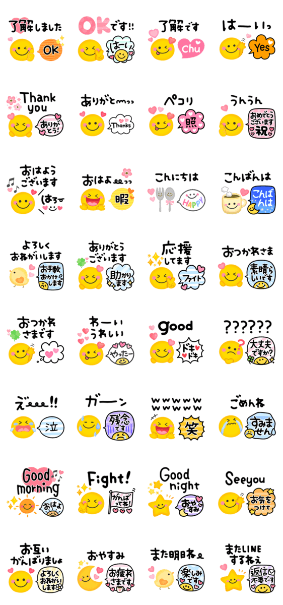 毎日使う言葉と敬語吹き出しスタンプ♡ 大人気ニコちゃんのいろんな表情とよく使う無難な日常言葉のセットです♪ かわいい/家族/カップル/大人可愛い/ガーリー