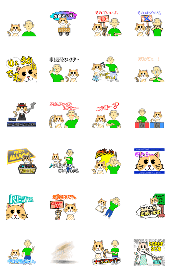 猫のような物体「ネッコ」と薄毛の「ウスゲさん」が動くスタンプです。こいつら…動くぞ!