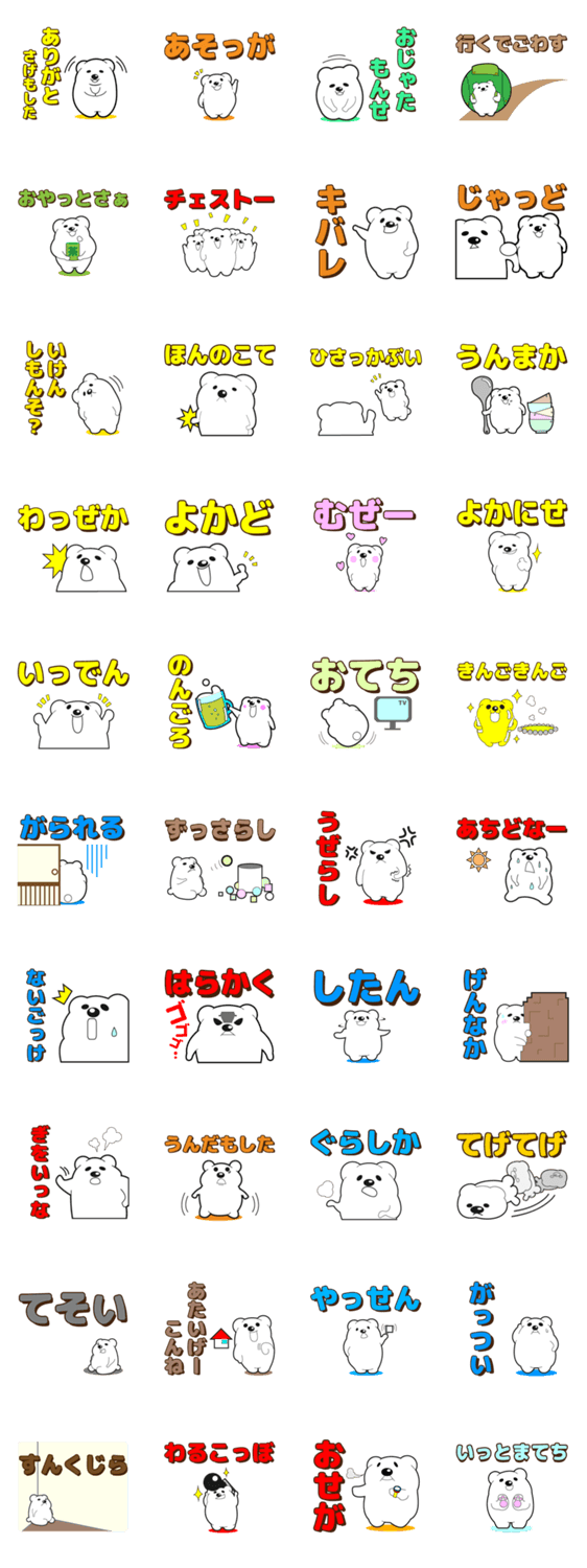 鹿児島は南国の白熊を鹿児島弁をしゃべる熊『シロクマどん』にしちゃいました。鹿児島弁特有のなまりとかわいさをシロクマどんのスタンプと共にお楽しみください。