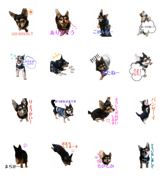 チワワとヨーキーのミックス犬cocoのかわいいスタンプです