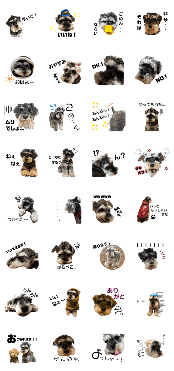 ミニチュアシュナウザーのししまるさん。カワイイししまるさんを毎日のあいさつで使ってあげてください!LINE Creators Studioでつくったスタンプです。