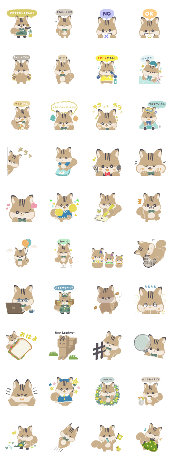 しまりす好きにお届けするしましまスタンプ デイリー使いに使いやすいシンプルで落ち着いた色使いのスタンプ多め