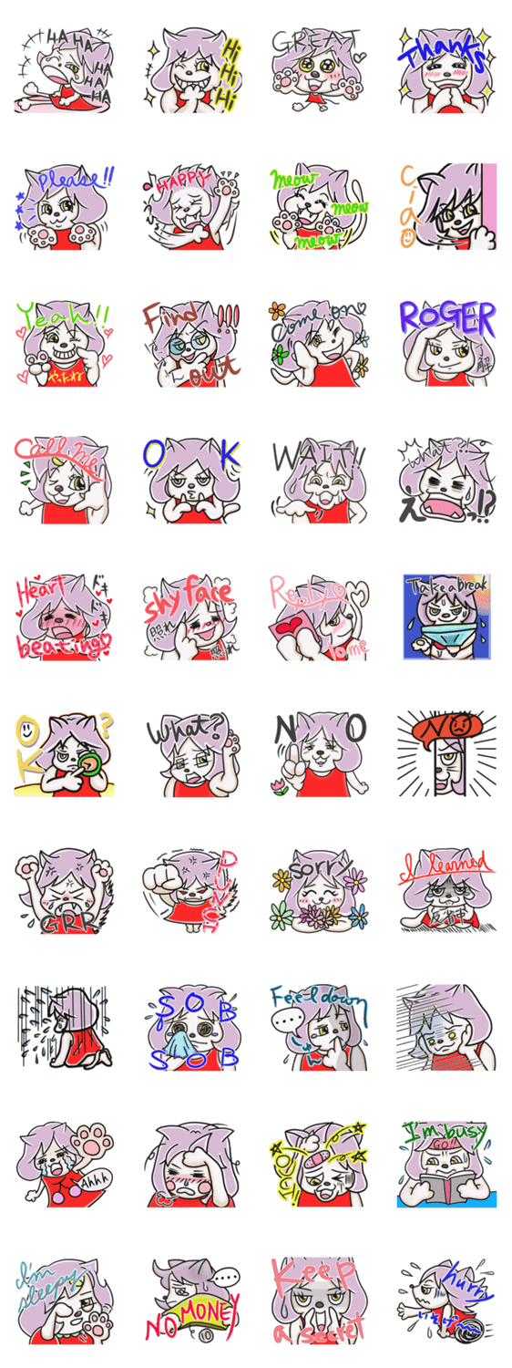 アビカは可愛い猫だけれど、沢山の表情豊かな顔を持ってます。同じ言葉でも表情や状況を変えてますので、どうぞ使ってくださいませ。