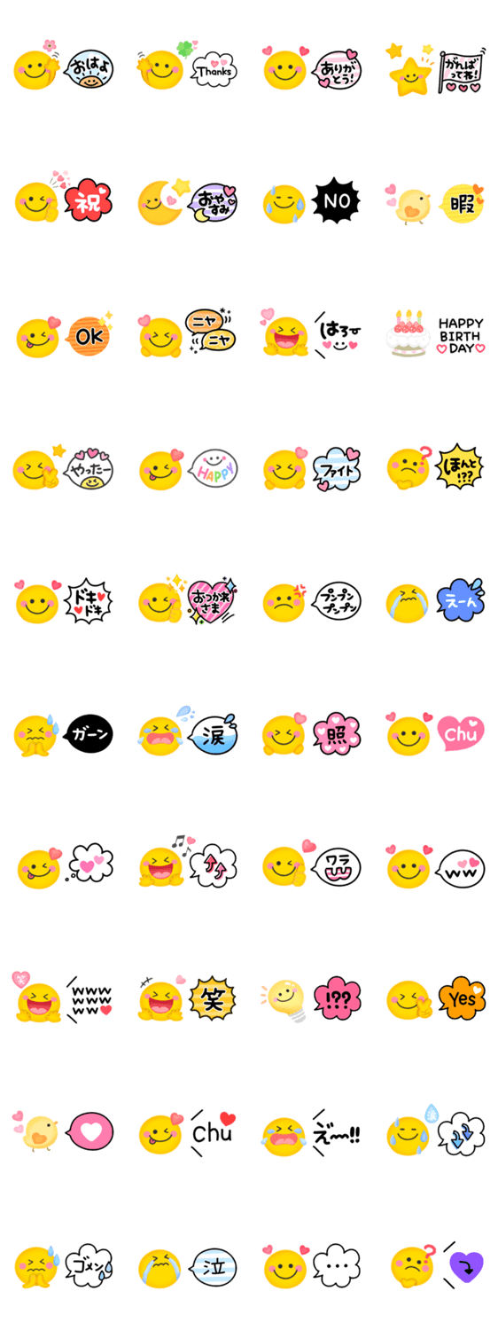 スマイルニコちゃんのいろんな表情とよく使う日常言葉の吹き出しセットです♪ かわいい/家族/カップル/大人可愛い/ガーリー/敬語