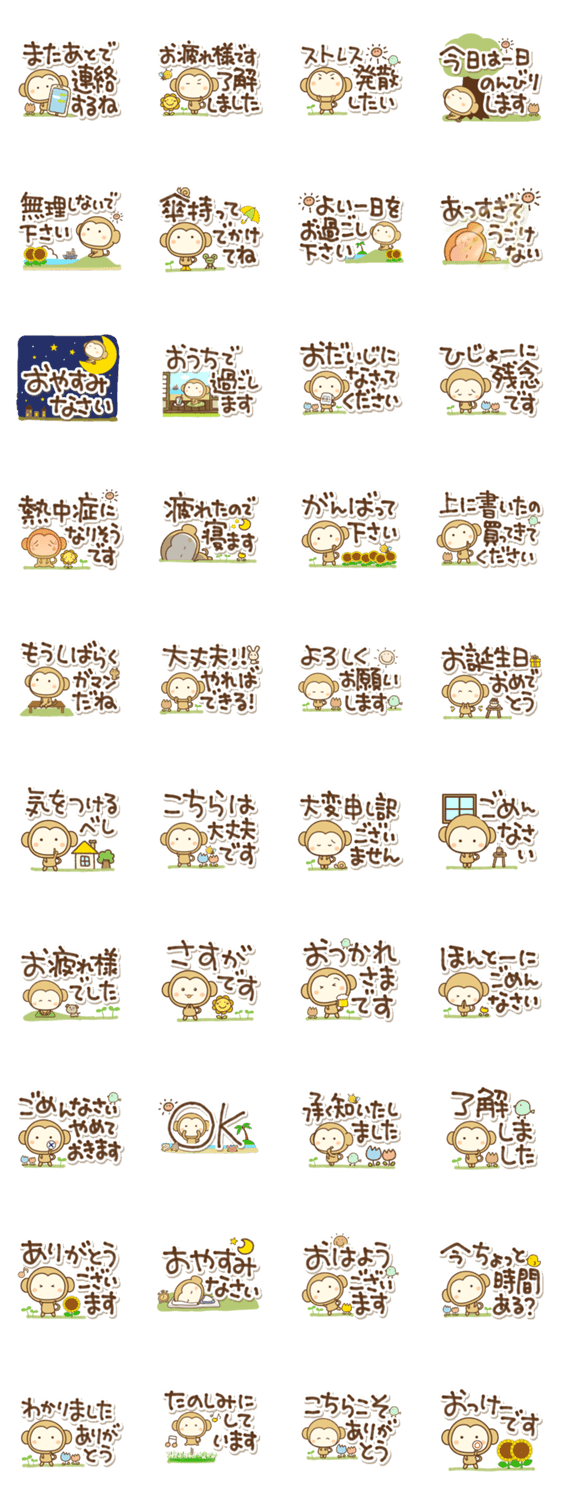 さるぼんの気遣いや挨拶、いまの気持ちをでか文字で可愛く伝えます。