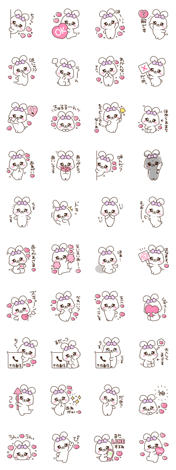 あざとかわいいうさちのスタンプ第二弾♡ 好きな人にも♡ 使える/リアクション/うさぎ/あざとい/リボン