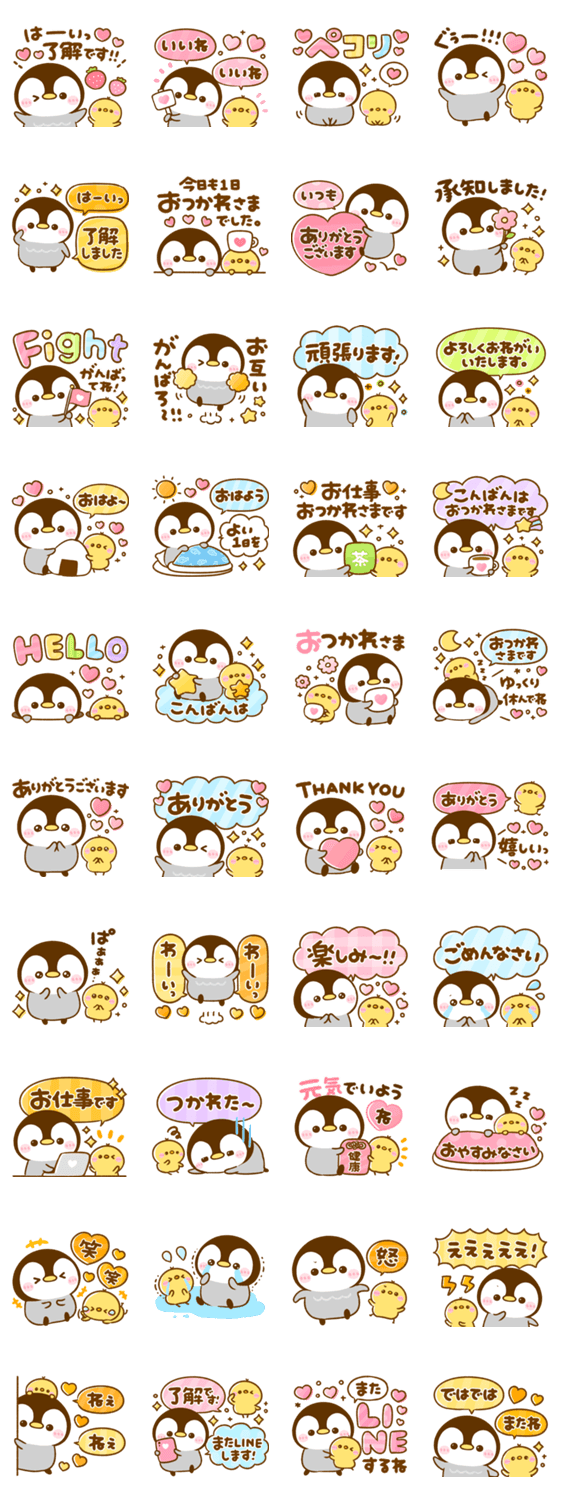 毎日使える敬語がいっぱい♪小さな赤ちゃんペンギン、ぺんぺんのカラフル可愛い敬語スタンプです♡ふきだしもいっぱいです!