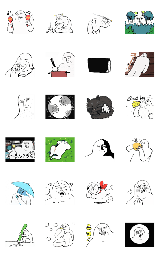動き、のびのびと生を謳歌している白ハゲスタンプです