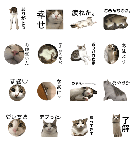 白ネコのあいうえお・・・ってるスタンプ