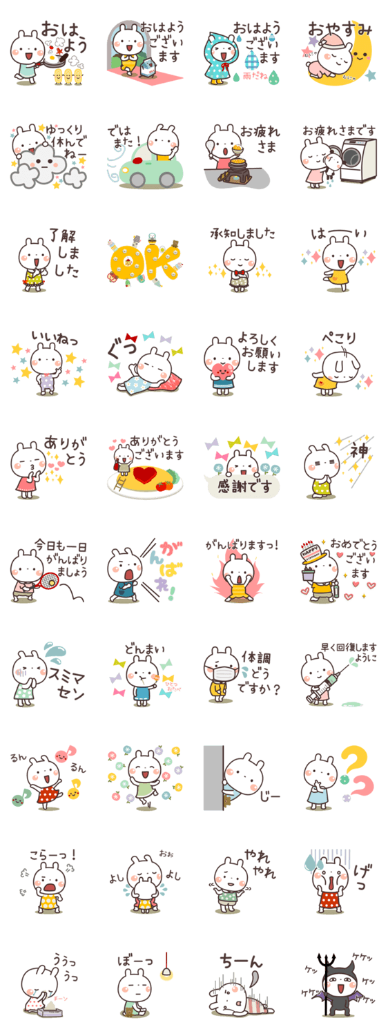 毎日使えるうさぎの大人可愛いスタンプです。日常で使いやすい言葉がいっぱいです♪