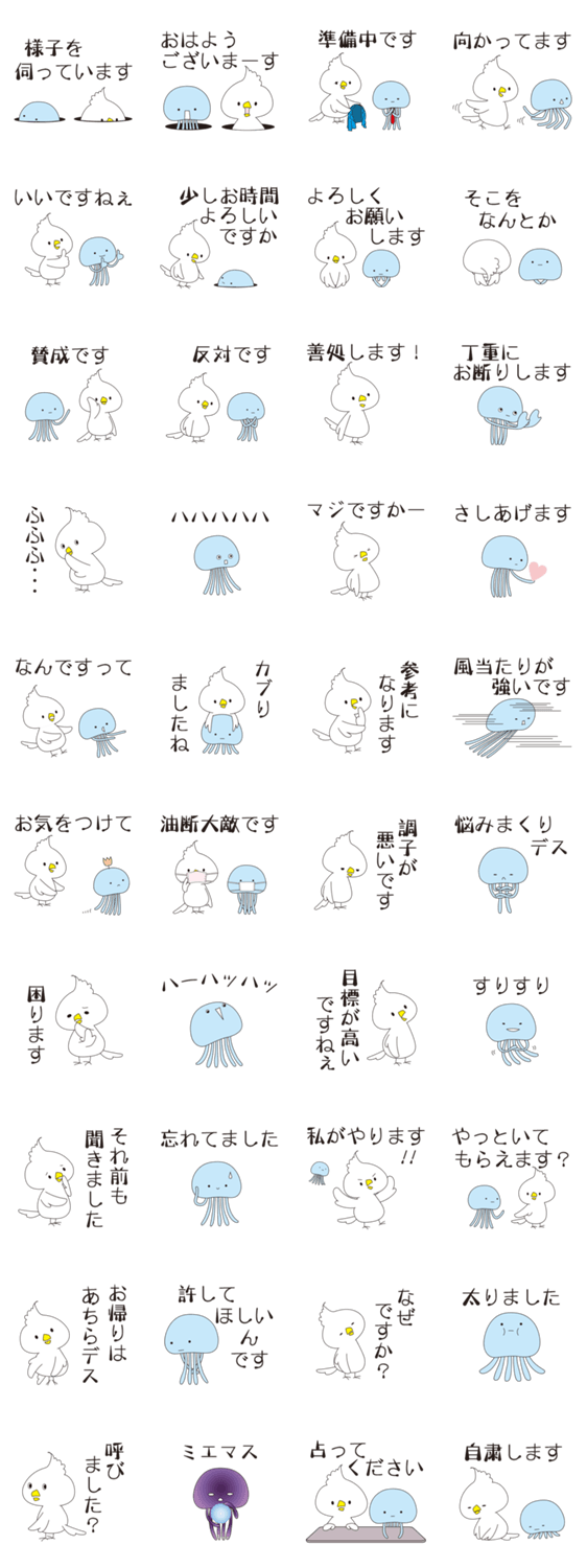 いつもはポジティブ、ときどきネガーな トリとクラゲ。Ver.7 敬語スタンプです。