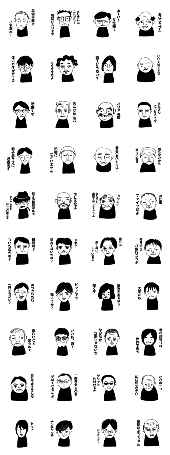 おじさんから素敵なメッセージが届く、そんなスタンプを作りました。老若男女使って頂ける言葉を集めました。あなたの毎日に彩りを...モノクロだけど笑