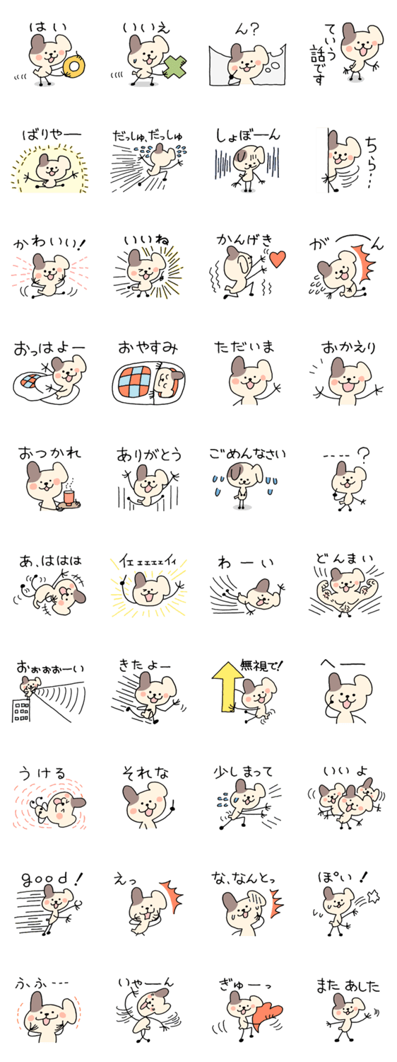 らくがきいぬ、略して「らくいぬ」です。毎日の会話に使えるスタンプです。