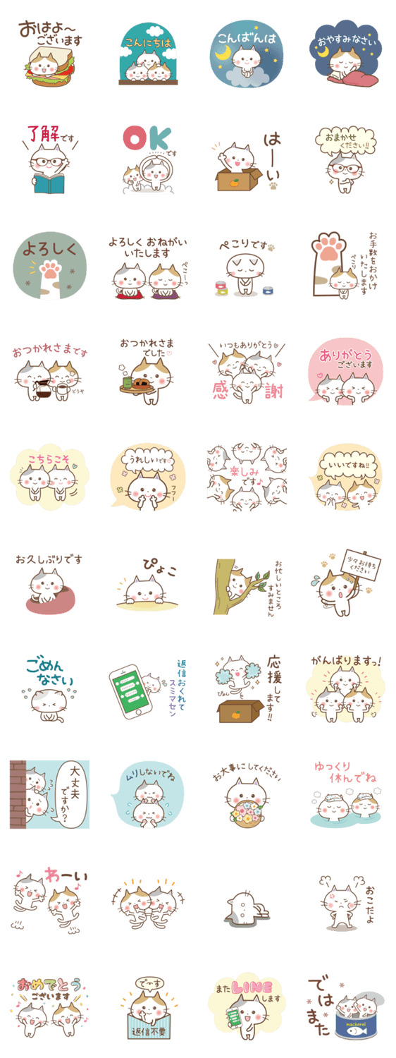 前髪短めな女の子に出てくる「ねこ」だけをスタンプにしました。 敬語で誰にでも使いやすい♪