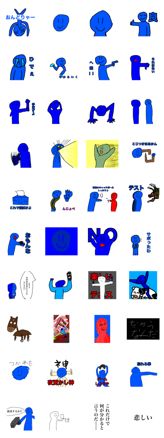 LINE Creators Studioでつくったスタンプです。そして青い人間です。