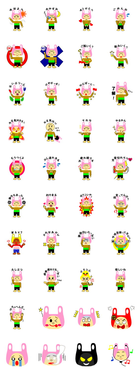 うさぎの着ぐるみを着たおじいさんのキモかわスタンプです!
