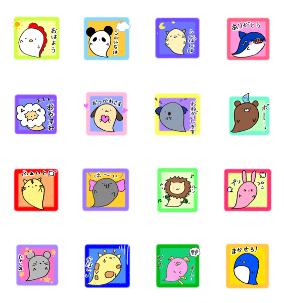 おばけ型のゆるい動物たちのスタンプです。小学生並みの絵心で描きました。気が向いたら使ってみてください!