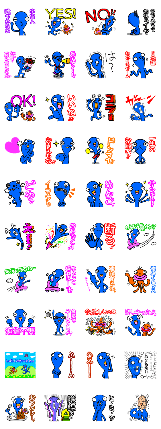 毎日使えるスタンプ集。宇宙人が家族や友達とのやりとりを楽しく演出します。