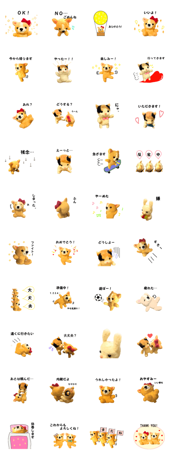 スタンプ説明 可愛い動物たちのぬいぐるみ風イラストです。