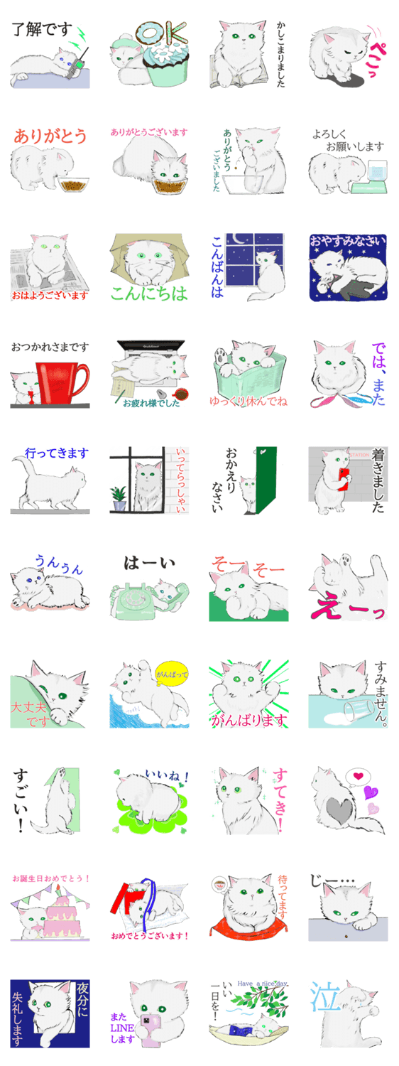 白ネコのあいうえお・・・ってるスタンプ