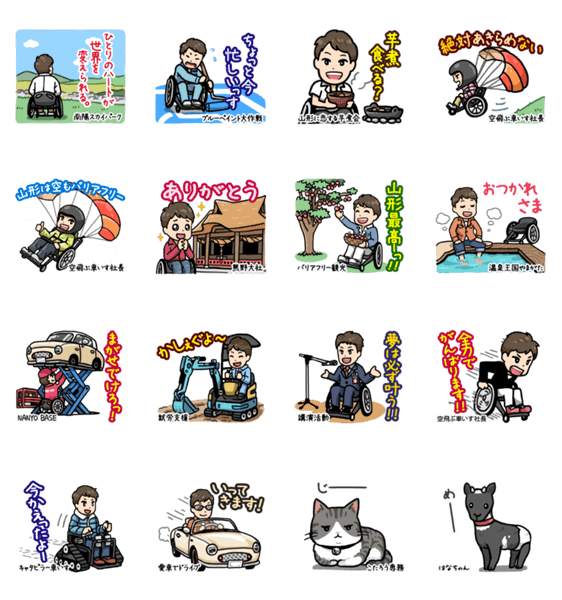 スタンプ説明 空飛ぶ車いす社長 加藤健一 公式スタンプ