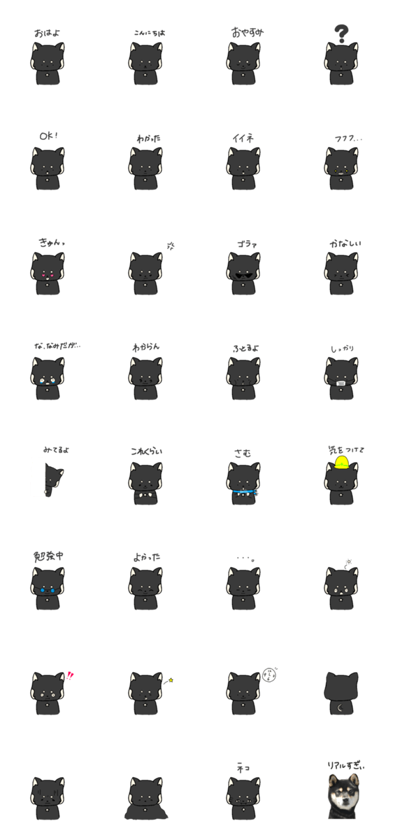 黒の柴犬こたさんのゆるスタンプ、よく使いそうばーじょん。