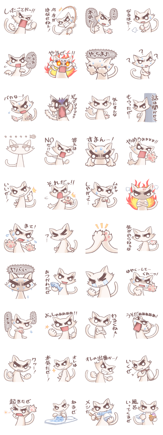 漢気あふれる熱血にゃんこ君のスタンプです。「巷じゃ猫のスタンプが人気らしいが…フッ。俺の時代が来たってことだな…!」