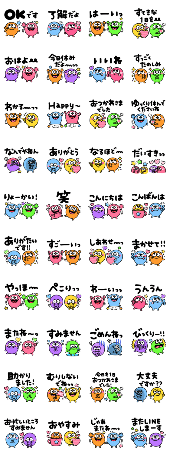 日常で毎日使える敬語を集めたカラフルモンスターのスタンプです。 見やすいBIGな文字☆ 働く全ての人、大切な家族、連絡用