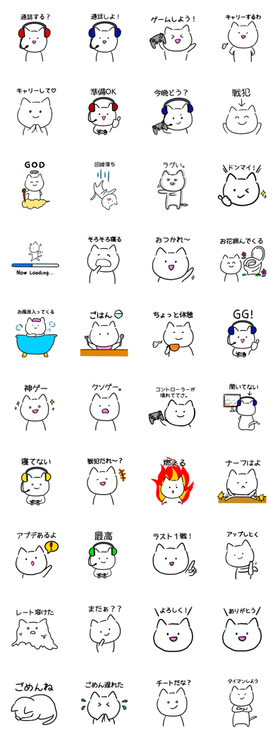 ゲームがやめられないネコさん。 ゲーム好きのあなたに使って欲しいスタンプです。
