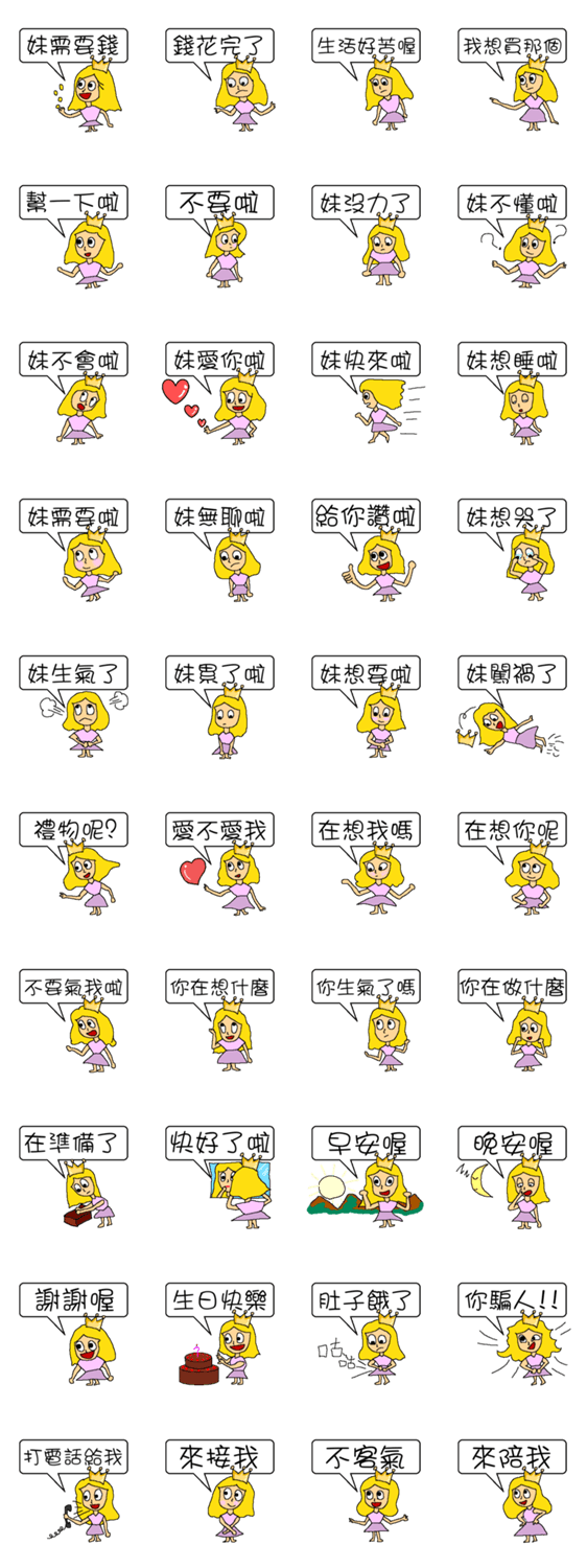 | スタンプ説明 | A girl who is a princess and she is sick. Sometimes she make unreasonable demands. |