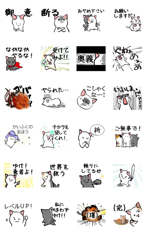 勇者や魔法使いなどRPGゲームのキャラが言いそうなセリフを、ネコがしゃべります。