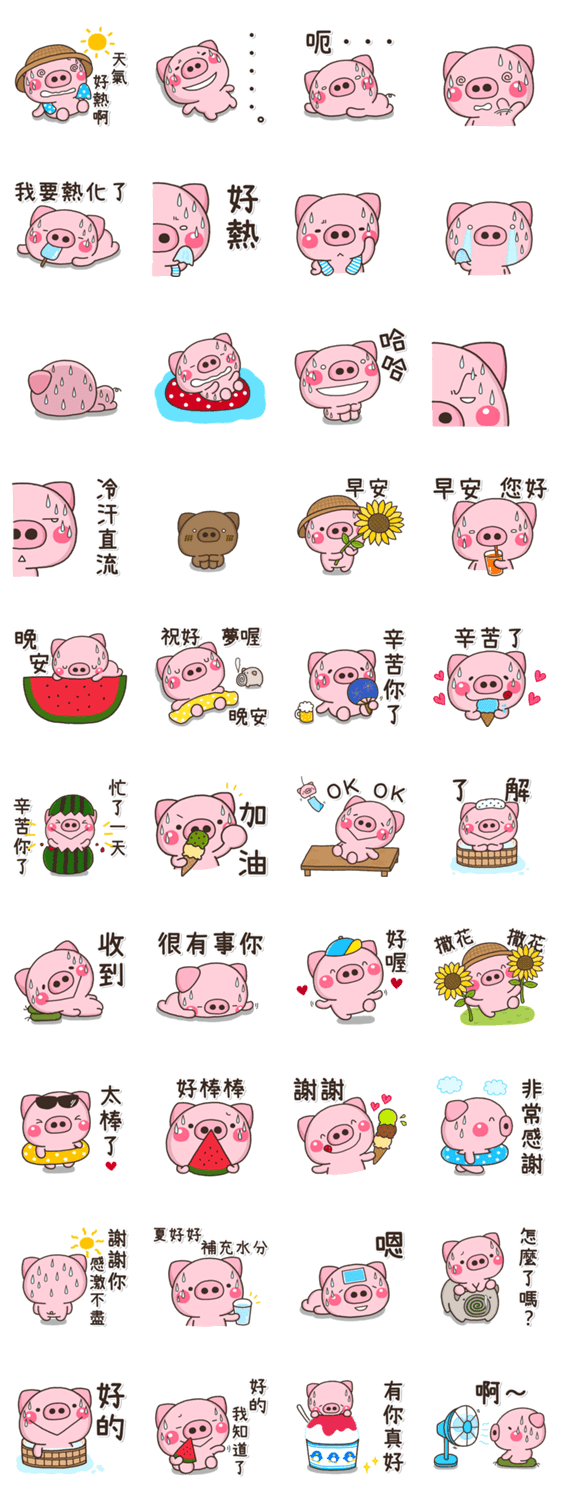 | スタンプ説明 | 今年的夏天㤰麼過?小豬夏日生活【Tomoko製作】 |