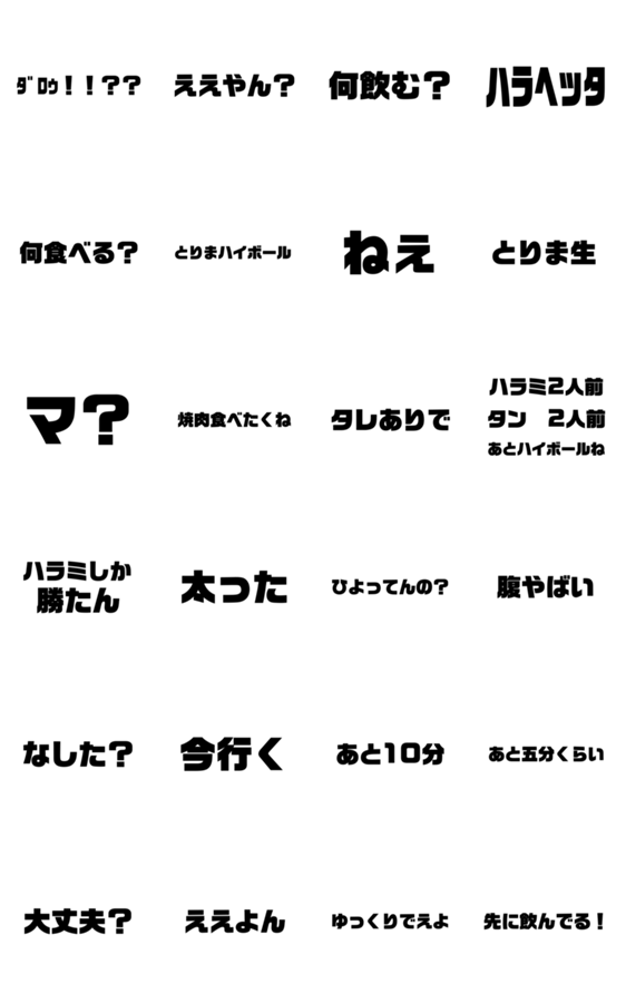 自分がよく使うセリフをスタンプにしてみた。(飲み会バージョン)