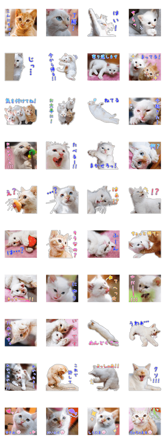 白ネコのあいうえお・・・ってるスタンプ