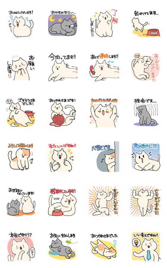 白ネコのあいうえお・・・ってるスタンプ
