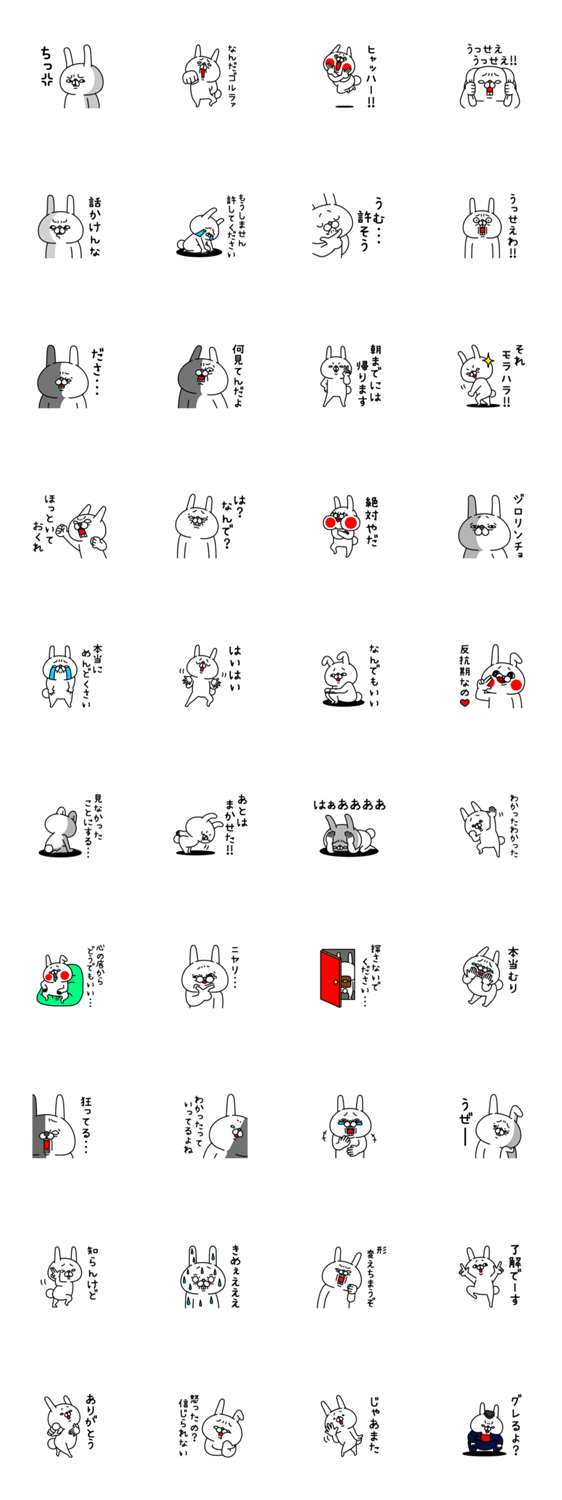 全力でうざい全力でおちょくるあざとかわいいうさぎの反抗期が止まらない。思春期真っ只中の中学生気分でお父さんやお母さん、恋人や友達を反抗期な態度で困らせよう。 ※このスタンプはトークルームで大きく表示されるBIGスタンプです。
