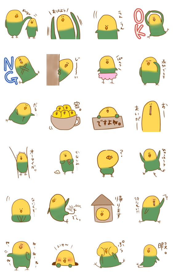 コザクラインコのスタンプです。鳥好き、ひよこ好き、ペンギン好きのあなたへ贈りますㄟ(•ө•) ㄏ