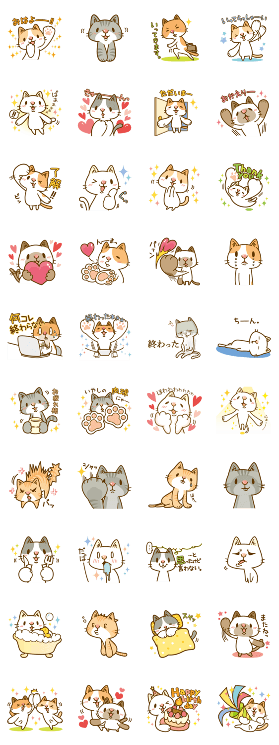 日常で使えるほっこりなねこのスタンプです。にゃんこ達と一緒にたくさんお話を楽しもう!